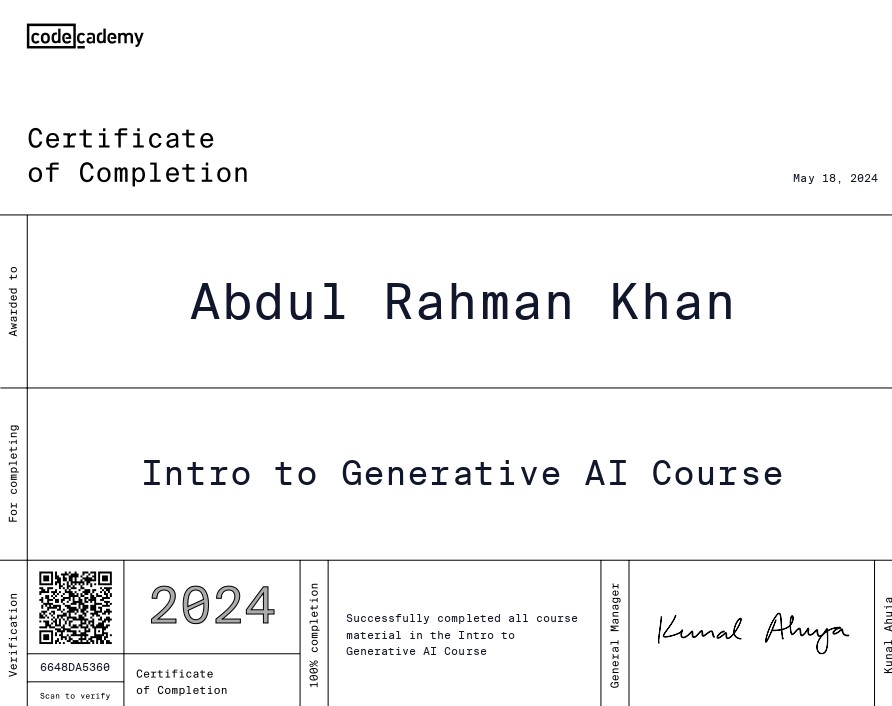 Hi there! My name is Abdul Rahman Khan