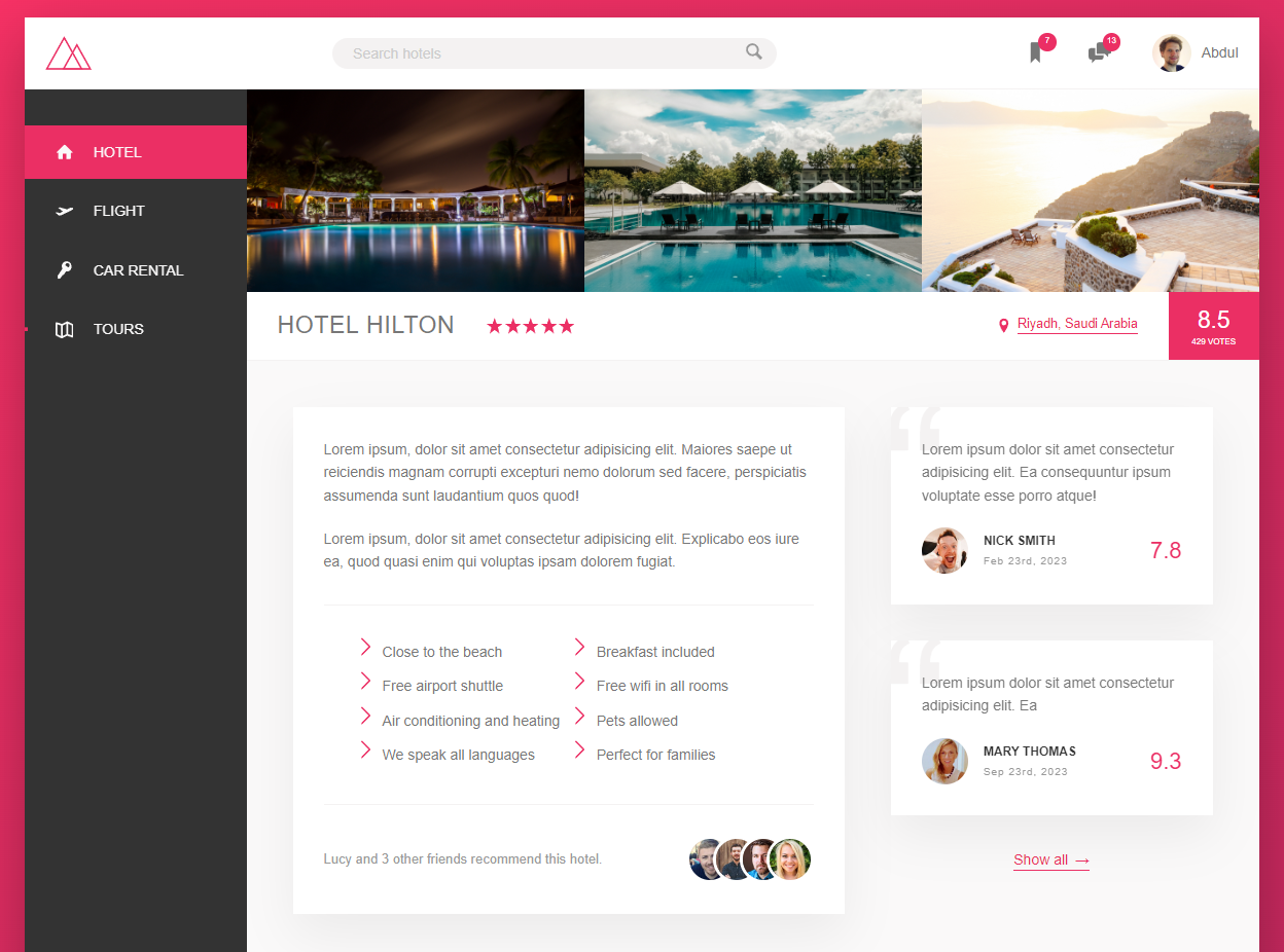 Hotel booking website crafted to perfection using advanced Flexbox techniques for seamless responsiveness across all devices.